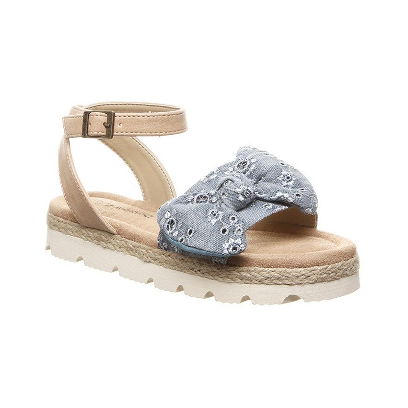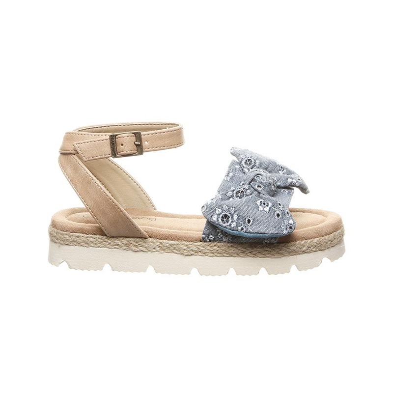 Canvas knotted bow strap Faux leather heel strap with hook and loop closure Microsuede covered contured footbed Cork-infused rubber midsole Accent colored EVA with rubber ripple outsole